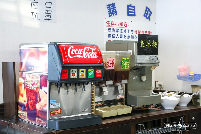 內用有紅茶、無糖綠茶和汽水無限暢飲,最可愛的就是好久不見的製冰機,冰塊是小小顆的,讓我想起小時候買販賣機的紙杯汽水,不過當天喝的紅茶有點淡,現場有和店家反應,希望他們可以再試試看^^
