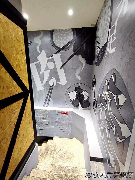 我前往B1座位區看看,梯間大片牆面繪有食物圖,很有趣~