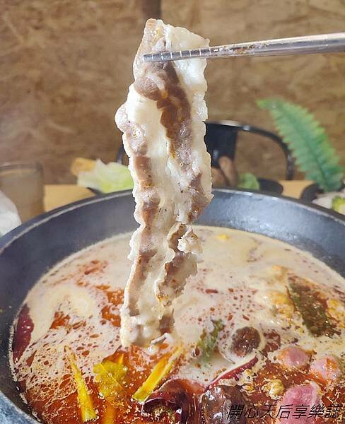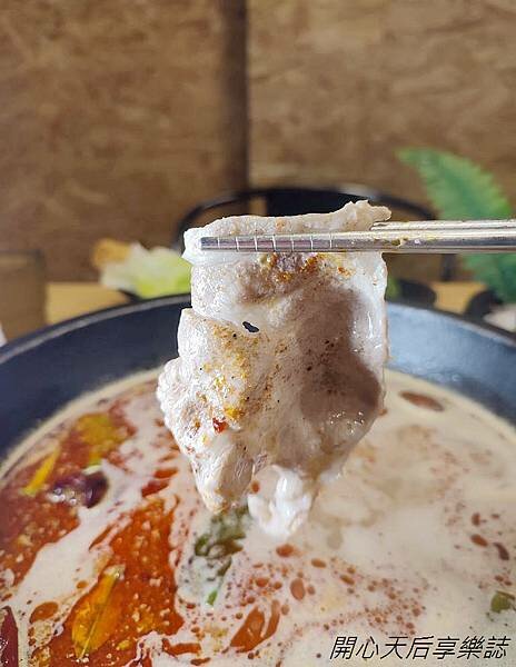 表面雖有層浮油,卻不油膩,因為加入了豚骨高湯,讓微香辣的湯底,喝起來比一般麻辣湯爽口