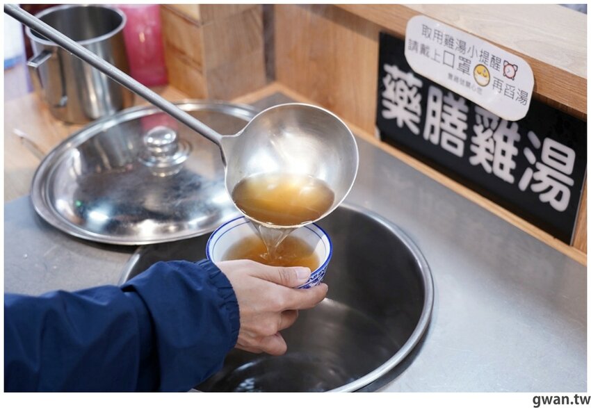 店內提供免費的藥膳雞湯,無論你是內用或外帶都可取用