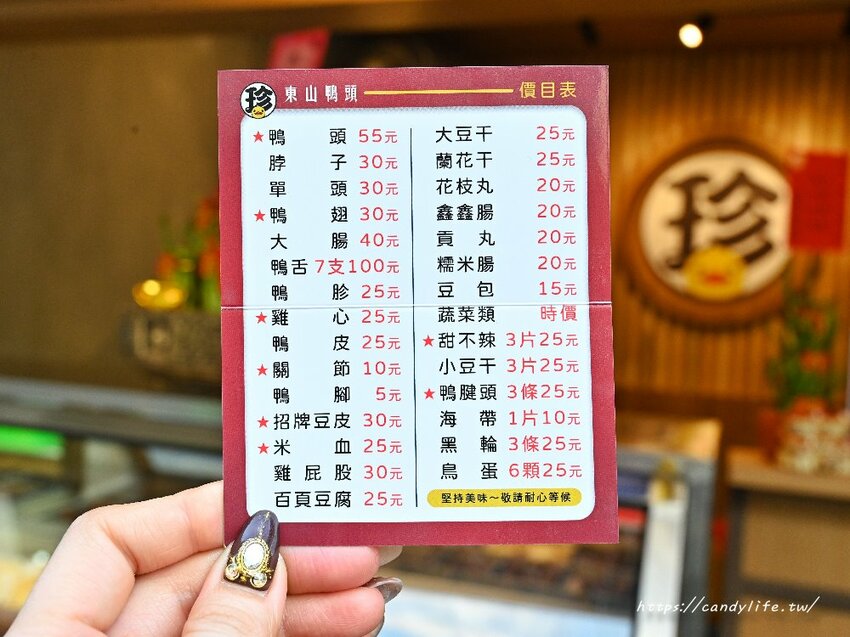 珍東山鴨頭品項近30種,價格透明化這點超加分,有些店家都不標價,等到點完要結帳都是會讓人含淚的天價