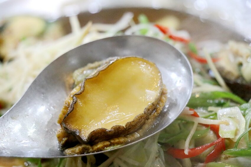更好笑的是小菲阿姨說他打電話給老闆娘說要點鮑魚的時候老闆娘說他們家只有小顆的