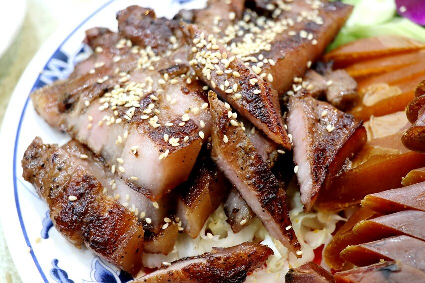 厚切鹹豬肉鹹香涮嘴,肥瘦適中不油膩