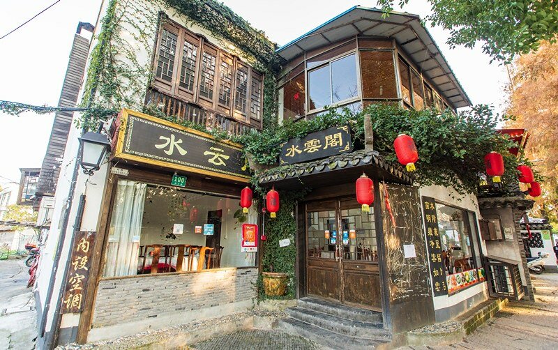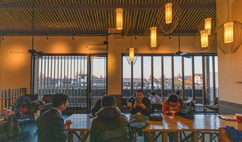 外觀有一點像洋式倉庫,但裡面倒是挺中式的,順便一提的是這座門市叫「朱家角尚都裡店」,據說是朱家角第一家咖啡館。