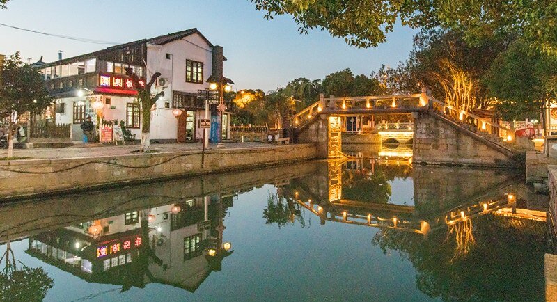 回程是夜暮低垂,華燈初上,朱家角的藍調添了少許的浪漫氣息。