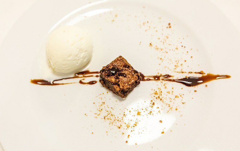 最後的甜點是椰奶冰淇淋,中間有一點像布朗尼但外面有一點酥脆,淋上的是巧克力醬,蠻甜的。