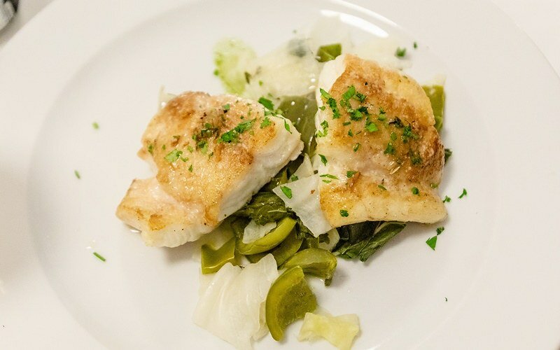 主菜有四種我們各點了一種,煎魚比較單純,幾乎沒有調味,算是這幾天我們在古外吃到最接近原來魚肉的一道料理,不管是口感還是味道,底下的蔬菜感覺是有漬過的酸甜。