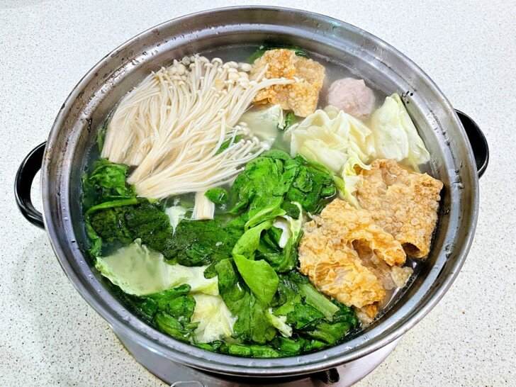 汕頭火鍋湯底由大骨及多種蔬果扁魚蝦米悉心熬煮而成