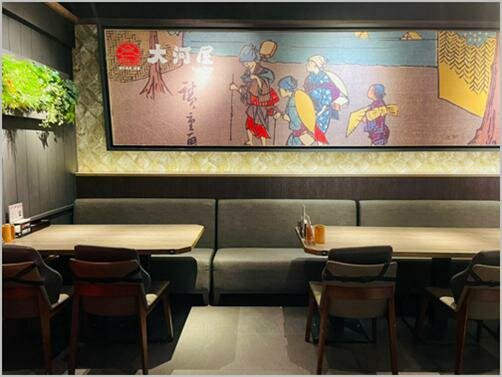 大河屋一生懸命的「獨門燒肉醬汁」,由集團品牌料理長精心研發,使用日本清酒為基底加入道地日式醬油、昆布等40多種特選天然食材,熬煮4個小時而成,甜鹹適中美味不膩!中和環球店延續日式屋台設計風格,保留大量木製柵欄裝飾,傳統薰木裝潢、懷舊紅燈籠、燈光擺飾,營造大河屋特有的用餐氛圍,打造視覺、味蕾感官享受。