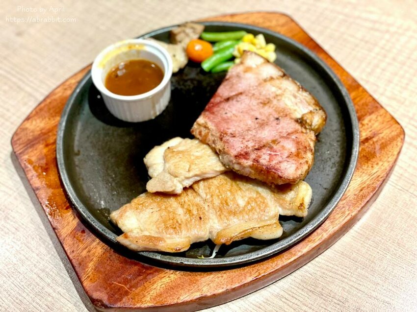 豬豬大隊裡面有牛室特製豬排配上牛室火烤煙燻火腿排,雙主餐的概念,我覺得點這種雙主餐超級讚,因為可以狂吃肉,而且還不同口味!