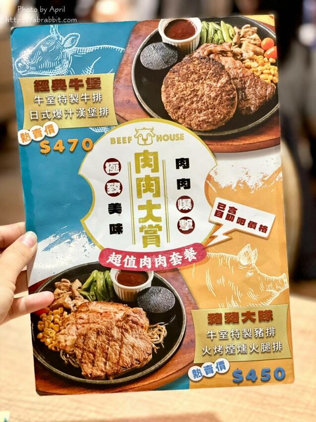 除此之外還有多汁的漢堡排與特製牛排組成的經典牛堡套餐只要470元,不能吃牛的朋友們,牛室也有照顧到!豬豬大隊的套餐也很厲害,特製豬排配上火烤煙燻火腿排,雙主餐也只要450元。