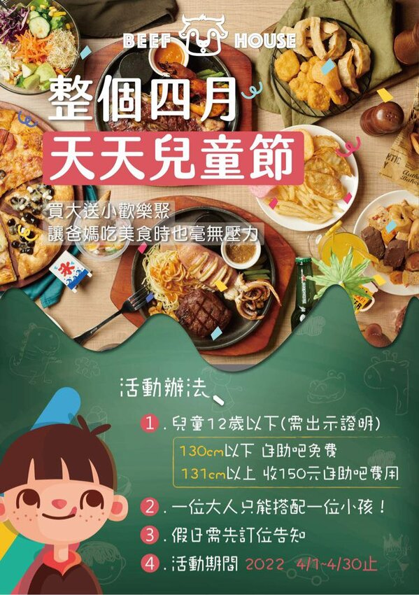 最後最後要提醒大家,四月份就是兒童節啦,但是牛室整個月都幫你慶祝兒童節!不只有披薩店才有什麼買大送小,牛室也有買大送小!讚啦! 幫大家整理重點: