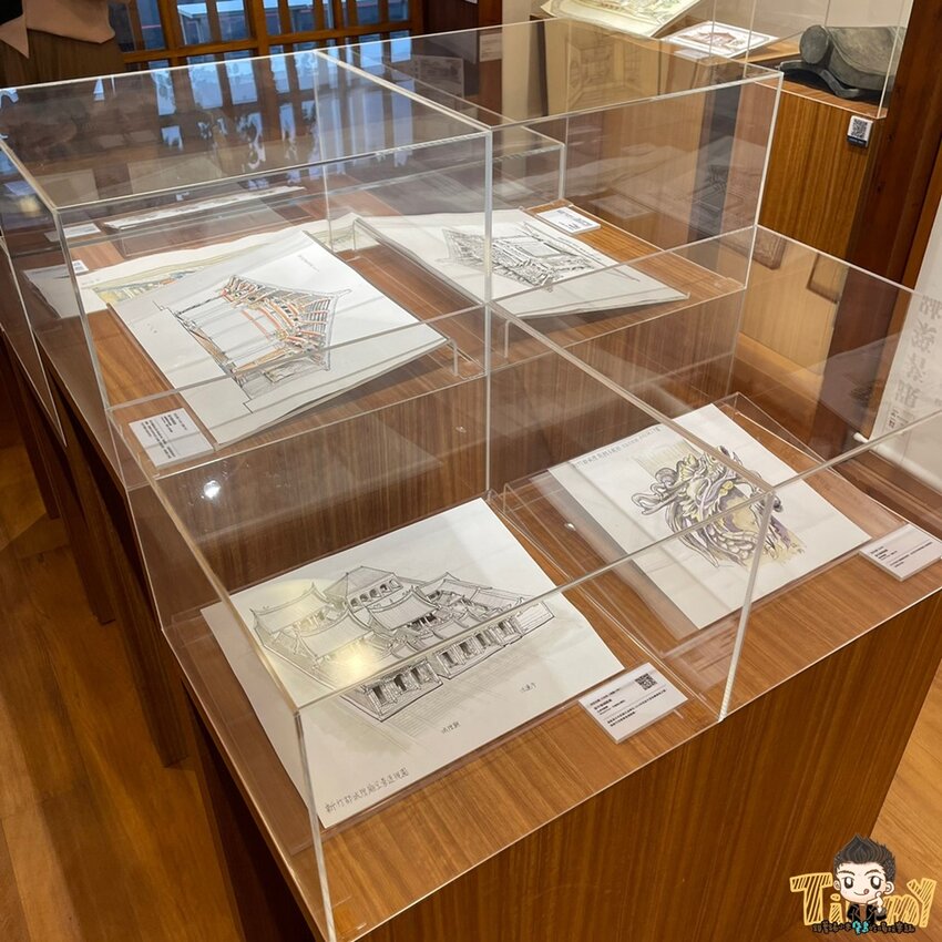 在展覽館有非常多李乾朗教授手繪珍藏的作品,大家可以看到像是鄭氏家廟的內部手繪圖。