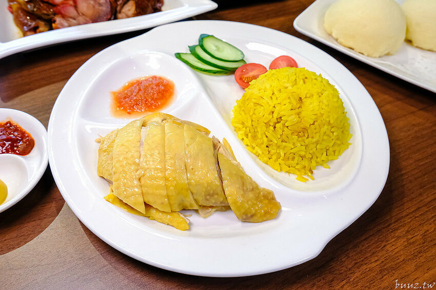 此外也有新加坡海南雞飯可以選,薑黃飯是泰國米加上南薑及南洋香料烹煮米飯再拌入雞油、油蔥而成油飯,吃起來有明顯的雞油香氣。