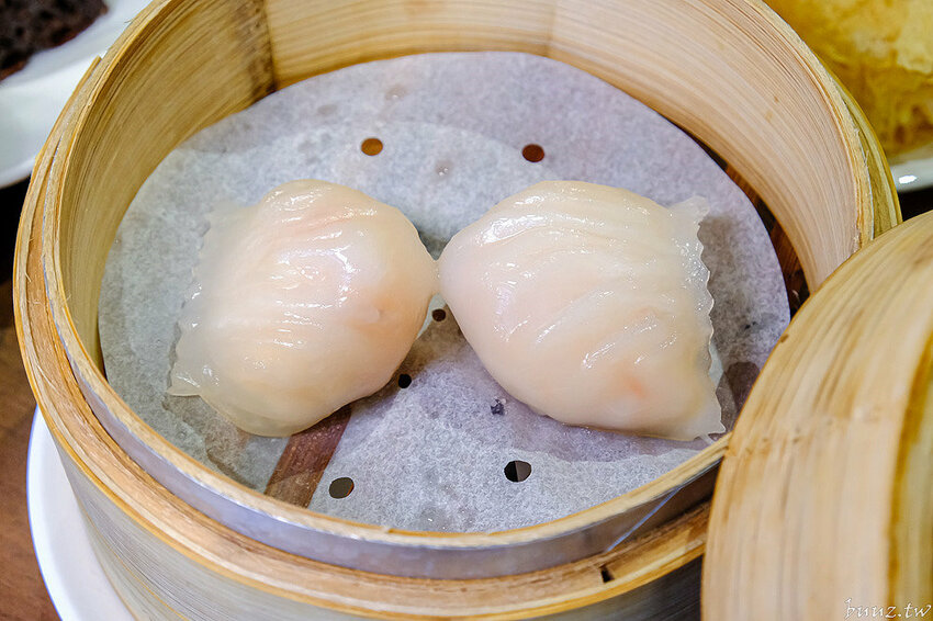 金苑蝦餃皇有著晶瑩剔透的餃子皮,包入蝦餃餡與豬絞肉餡料,融合蝦子與豬肉鮮甜的滋味,咀嚼起來滑溜脆彈的口感也很迷人。