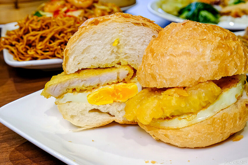 有咬勁的法國麵包內還多加了太陽蛋,豬排沒有骨頭而且外面還有層酥酥的麵衣,吃起來更香更有口感。