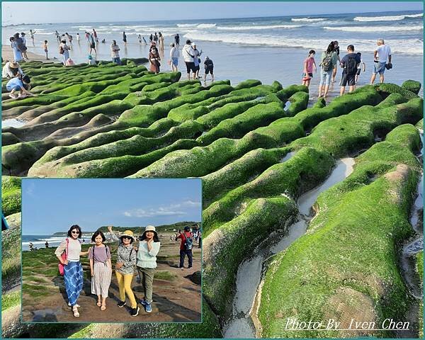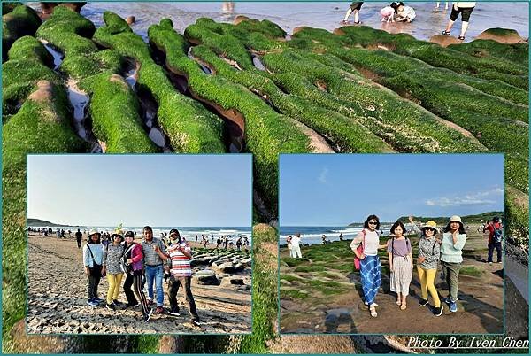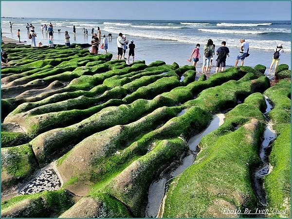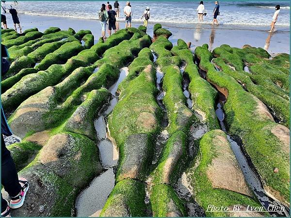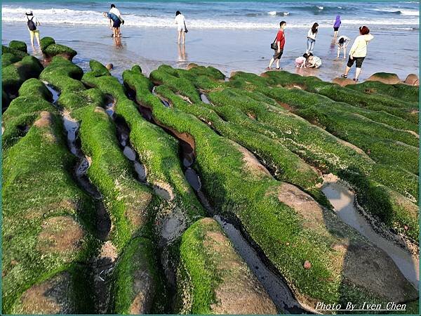 水沖刷後,形成海藻包覆岩石的綠色豔麗景觀。