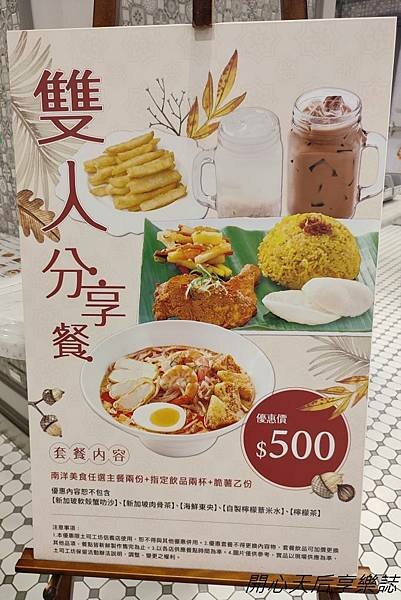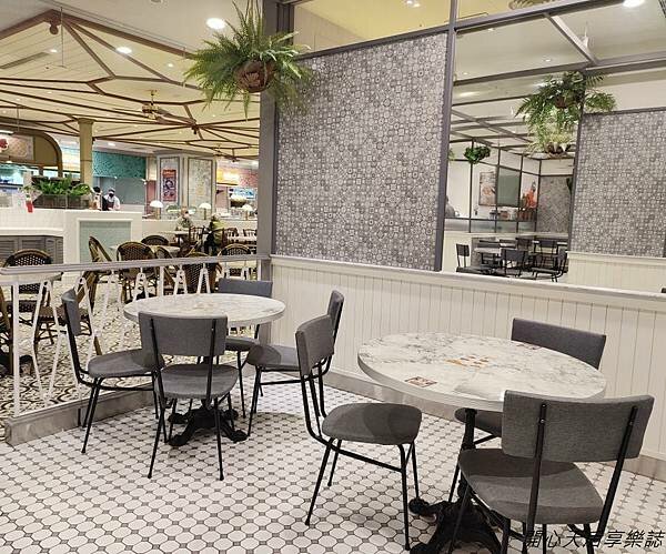 採用大理石餐桌,很有質感;有著以新加坡國花-蘭花為主題的花草網美牆,加上別致的花窗天花板上掛有綠葉盆栽,整體蠻有南洋咖啡室的氛圍