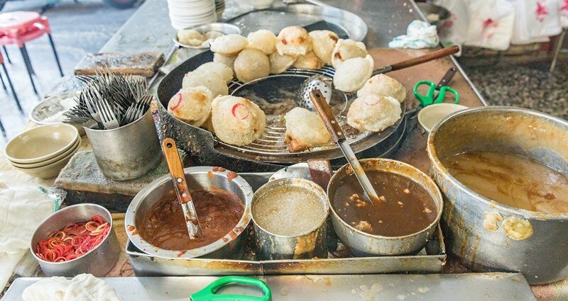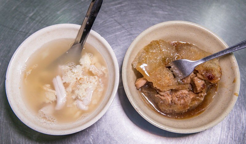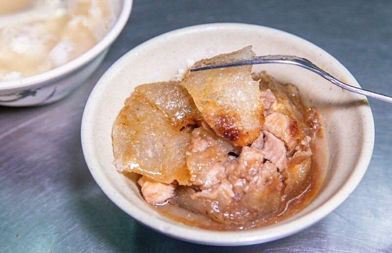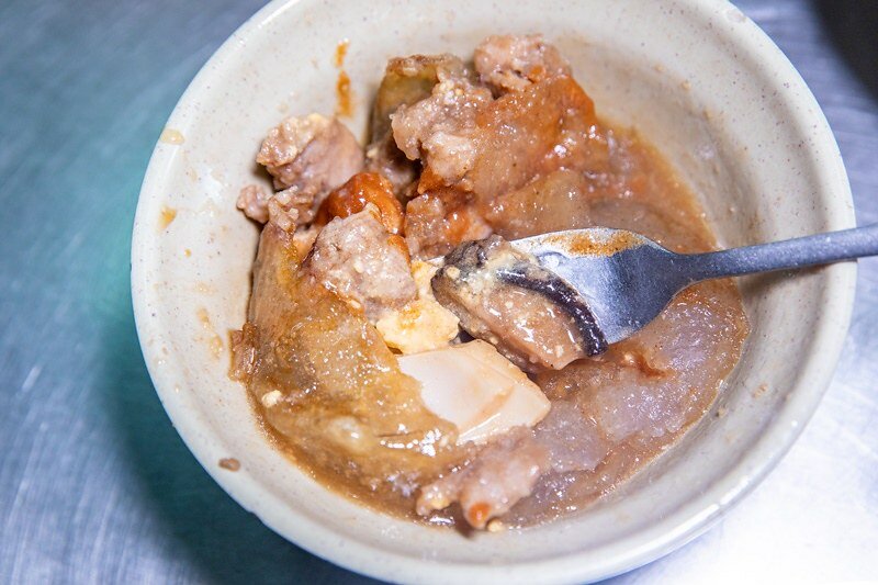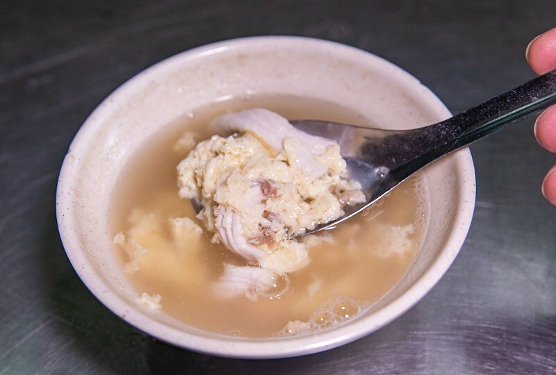 龍骨髓湯北部也是有,但這裡又加上了蛋花,增加了少許的滑順和綿細口感,湯頭算是相對清爽,最後學當地人的吃法把剩下的湯倒入吃完的肉圓中,那湯就像升了級般的美味,香甜油辣。