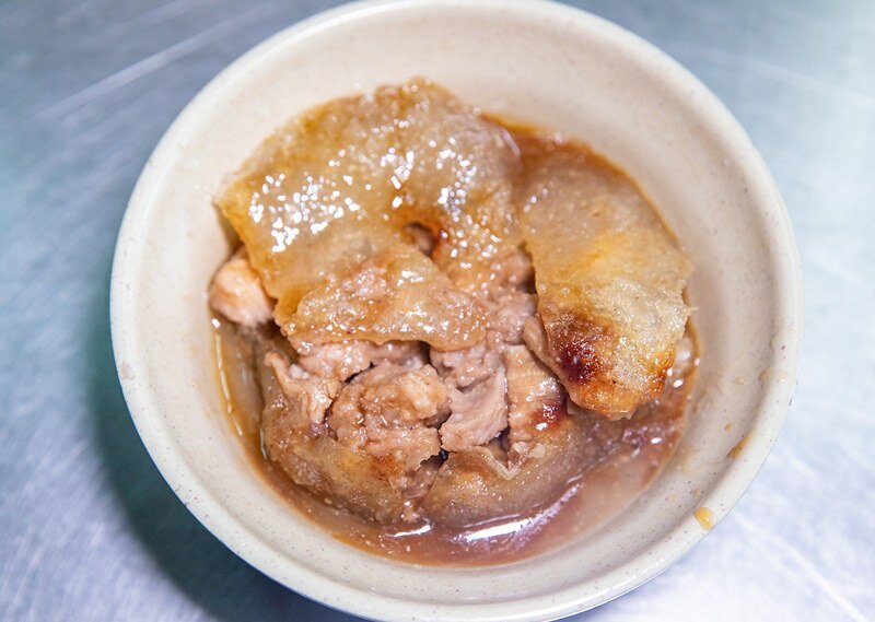 這肉圓伙乾,我心裡吶喊著,但才一口我就住嘴了..因為這皮好酥好酥,而且半點都沒有過硬的問題,同時底下較厚的部位又帶著討喜的軟Q,而且那看起來有一點焦的皮,居然有著令人喜愛的油香,光這皮就讓我喜歡的不得了。