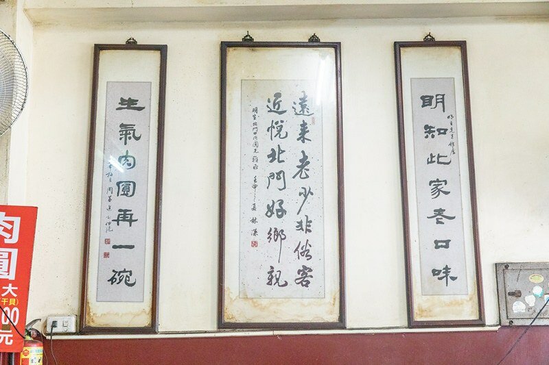牆上放著三幅聯,喜歡生氣肉圓再一碗,一碗還氣,那就再來一碗。