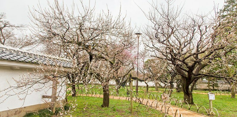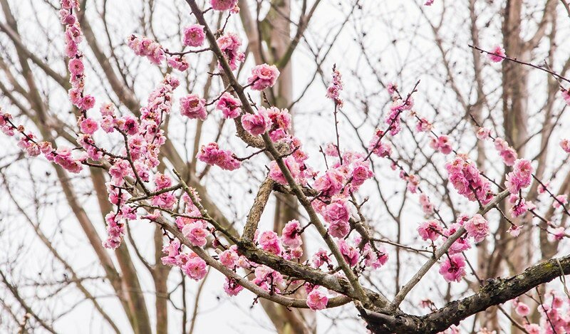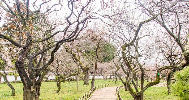 水戶六大名木之一江南所無每年三月中到四月初開花,算是比較晚開的梅花,特色是鮮桃紅色的花朵。