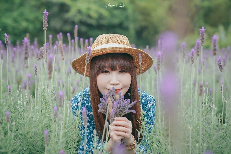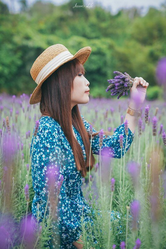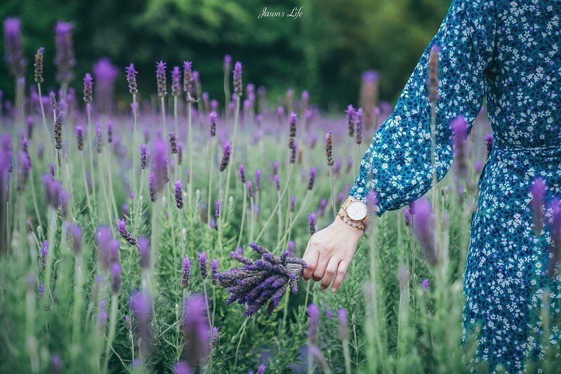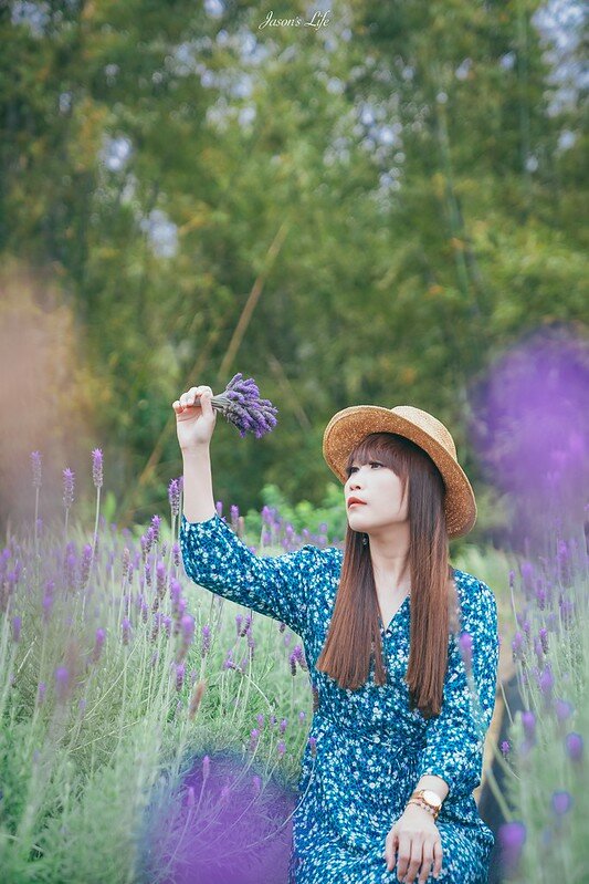 薰衣草的高度剛好與大人蹲下來的高度差不多