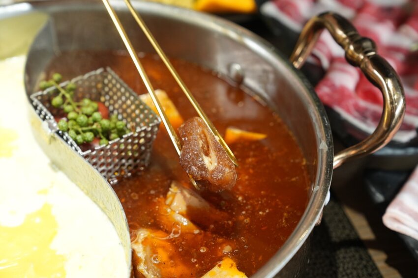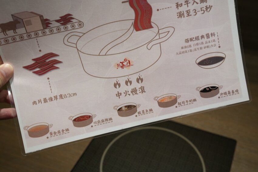 超夯川的光是鍋底就有五種口味可以選,包含川府麻辣鍋、沖繩壽喜燒、成都酸菜魚、黃金蔬食鍋和起司牛奶鍋,其中我最喜歡的是成都酸菜魚,酸酸辣辣的口感相當夠味!