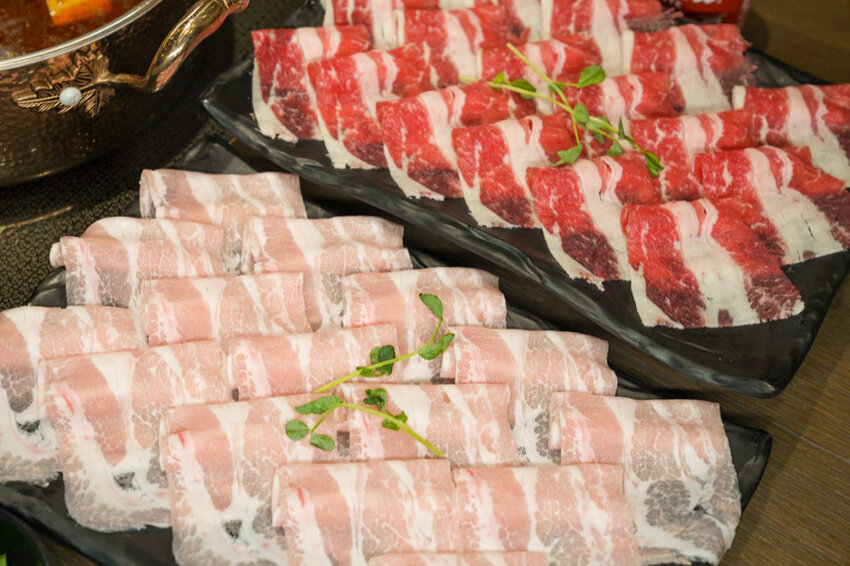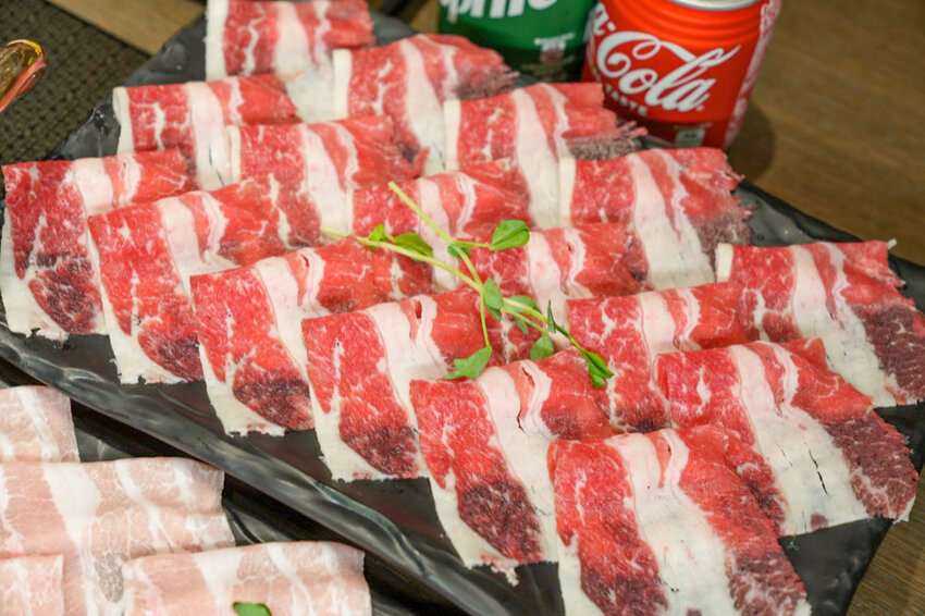 雖然是吃到飽食材卻完全不馬虎,無論是澳洲M9和牛、美國見島和牛背鍋、美國Choice頂級牛五花、國寶松阪豬、紐西蘭小羔羊卷和鮮嫩雞肉卷通通都能吃到,尤其是肉質鮮美的澳洲M9和牛絕對是必點的肉品,可以吃好吃滿完全是嗜肉一族的福音!!