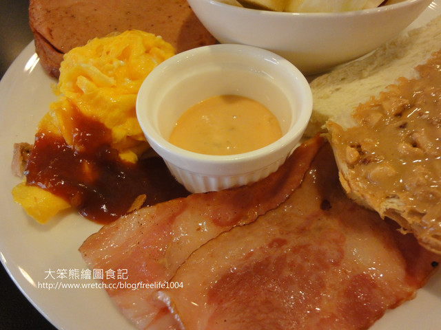 大笨熊點的是羅福經典火腿德式早餐 150元{食量大