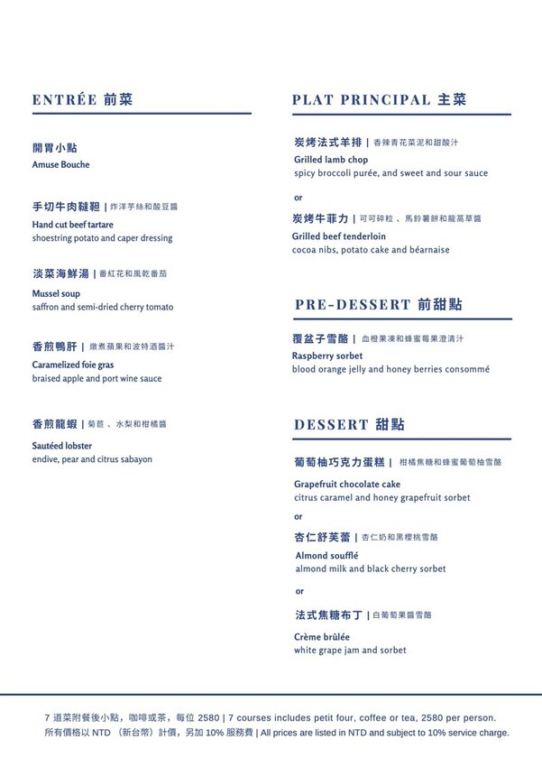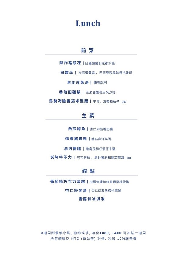 就能品嚐到三道菜+飯後小點(咖啡/茶),