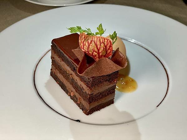 巧克力蛋糕,切的時候有一層層的快感