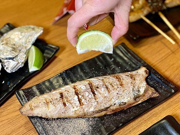 烤後的鯖魚,魚皮焦香金黃,