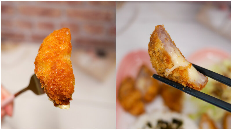杏子芋泥起司可樂餅採用大甲芋頭泥加上莫札瑞拉起司,可以說是非常特別的可樂餅組合,先前都沒吃過這樣的口味