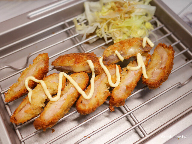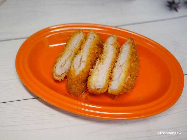 外皮酥脆,肉質多汁,麵包粉所住肉汁,完全不柴,每一口都是滿足