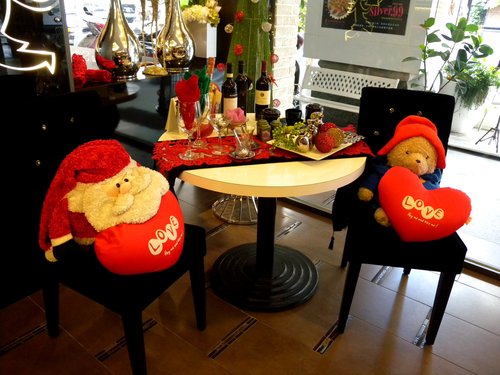 旁邊的布景已經充滿了耶誕節氛圍囉!