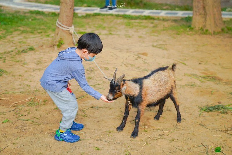 現場也有販賣草飼料,可以近距離接觸小山羊