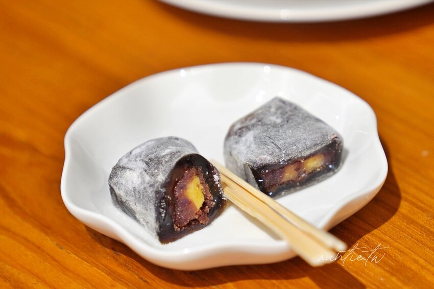 飯後甜點黑糖麻糬,口感軟Q口味不甜膩,內餡包著紅豆、綠豆泥,冰冰涼涼的口感,真的很想多吃幾顆耶!
