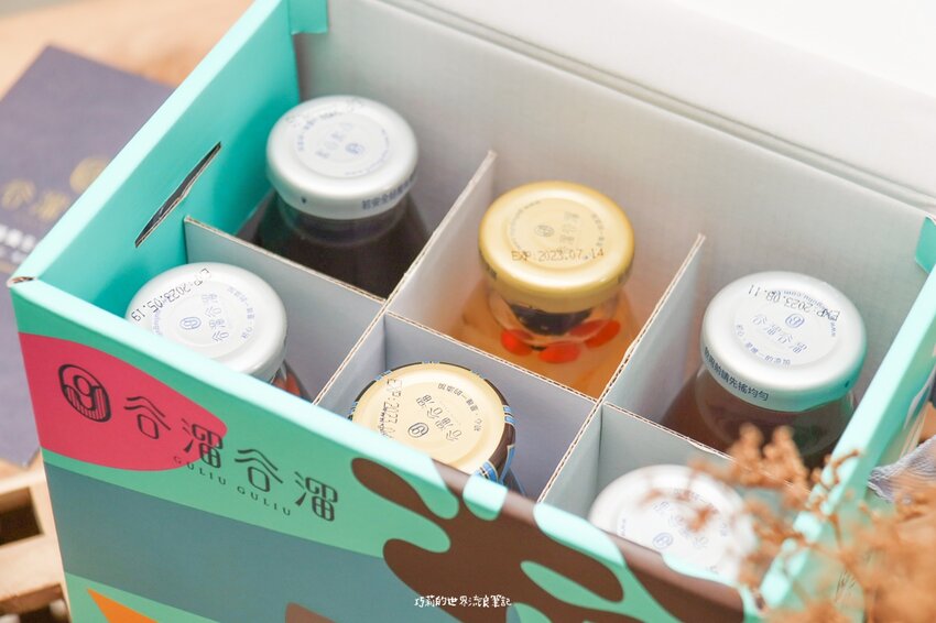 谷溜谷溜的禮盒都是6入組,可以任選搭配,沒有想法也可以直接選擇已經搭配好的組合,逢年過節還會推出應景的限定包裝,設計感十足體面又大方,誰說養生飲品是長輩的專利,養生概念也能時尚又繽紛!速速手刀預約免費試飲,喝喝看,你最喜歡哪一味?