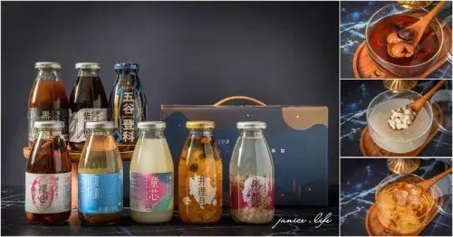 現場所有口味都可以試喝,有喜歡再買,目前總共有7款養生飲品,井裡月(銀耳)、黑瓊露(黑木耳)、五谷登科(堅果飲)、裸心(桂圓紅棗)、彤顏(薏仁)、紫相思(紫米紅豆)、夏雨(蜂蜜檸檬奇亞籽),名字都取得好有詩意,品牌主肯定是個浪漫骨子,全部喝一輪真的是難分軒輊,我個人最最最喜歡「井裡月」銀耳與「彤顏」薏仁,沒錯,都是愛漂亮系列❤❤❤