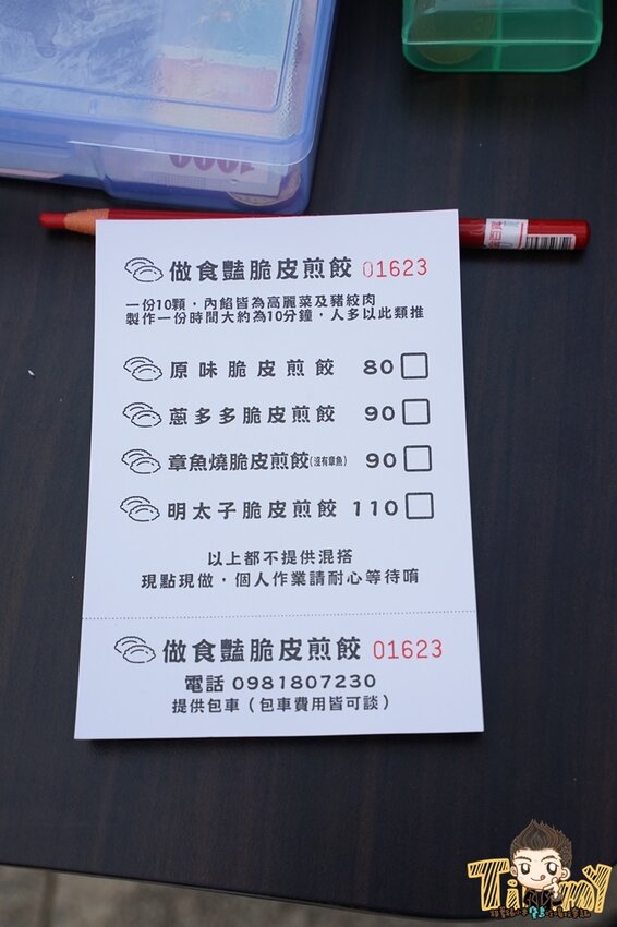 來看一下MENU吧,主打的是脆皮煎餃,內餡是以高麗菜豬肉為主,跟店內是一樣的四種口味,小米之前全部都吃過一輪了!口味上都很不錯,看個人口味選擇啦!