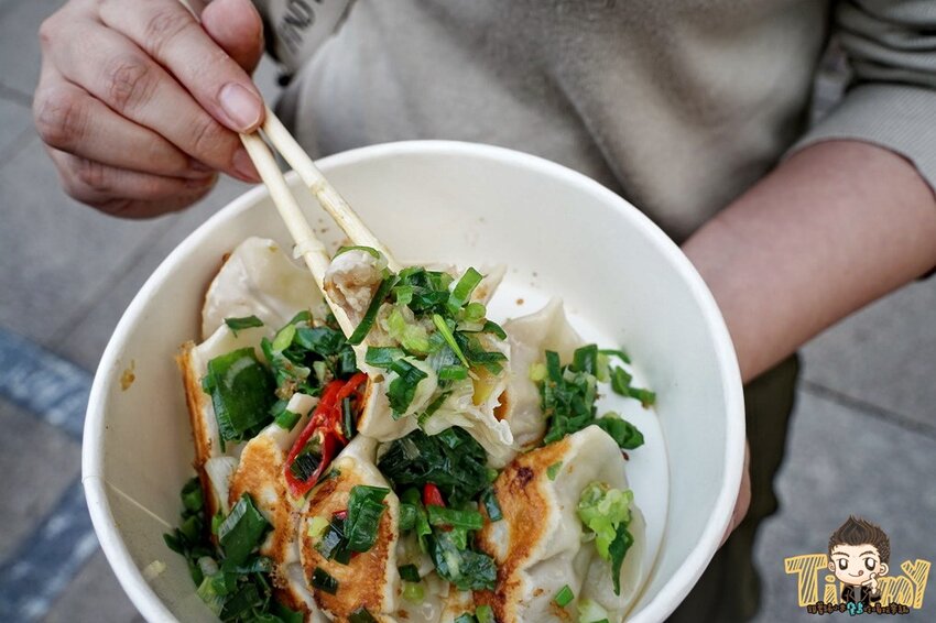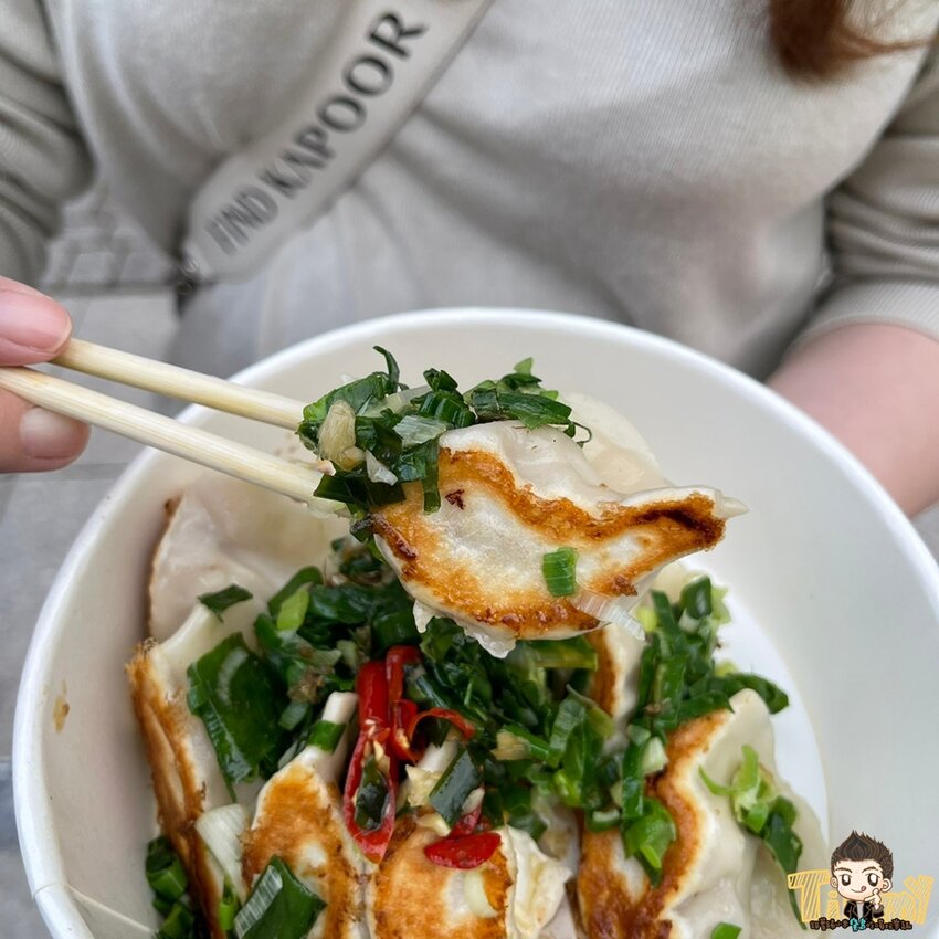 重口味朋友是一定要像這樣夾著一堆蔥花來吃,鹹香脆口的蔥香配脆皮煎餃有不同層次的享受