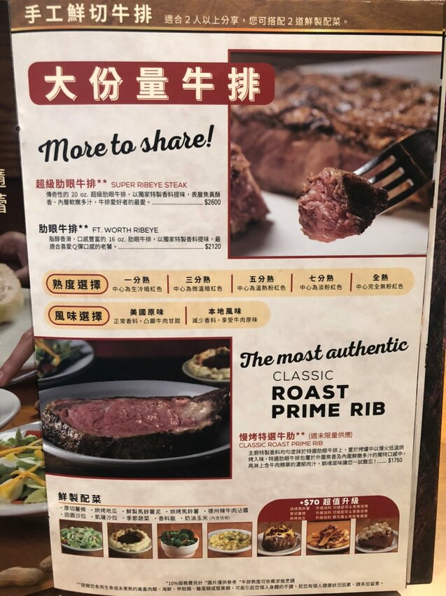 這塊德州牛排是他們的招牌呀,可以參考他們的建議選五分熟喲。