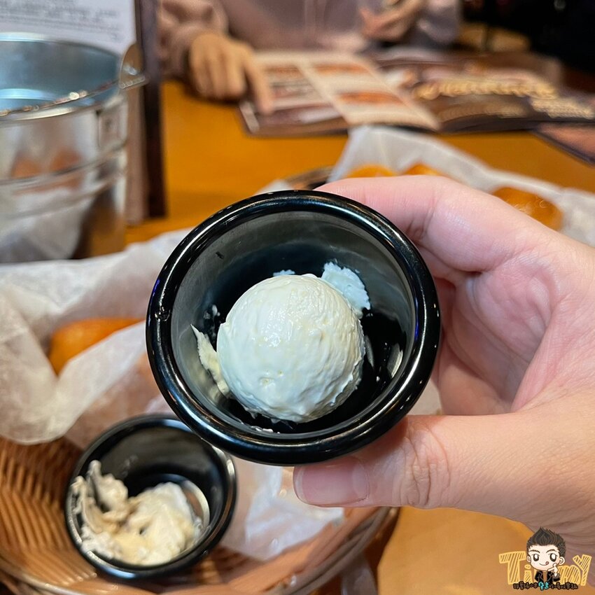只要有點餐就會提供烤熱熱的麵包,外面酥酥的裡面軟軟的喔,而且可以無限續加,預設附上的是肉桂味的奶油醬,如果不習慣肉桂味的朋友,小米有幫大家詢問他們有提供原味的奶油醬唷,有需要的話可以跟他們說一聲吧