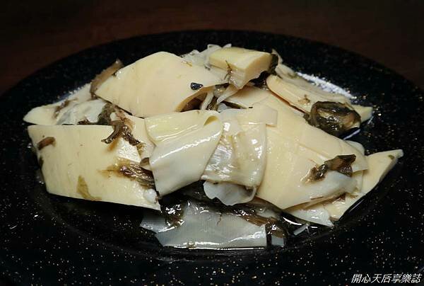 阿里山石篙筍$50,採用生長於阿里山高海拔的石篙筍,肉厚鮮嫩,加入特選客家梅干菜,以鵝肉高湯烹煮