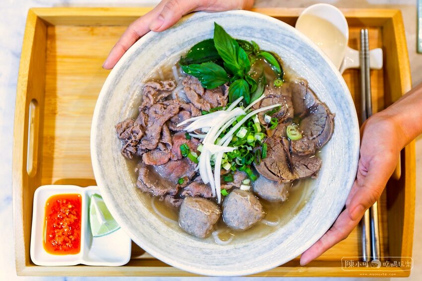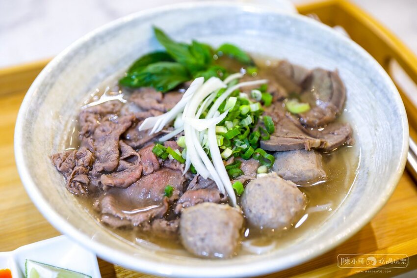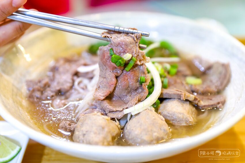 以蔥花、洋蔥提味,湯底以牛骨、豬骨和蘿蔔等香料熬煮,鮮甜好喝,對湯控的我來說,湯有點少,尤其河粉超吸湯,後來請店家幫我加一點湯比較滿足。