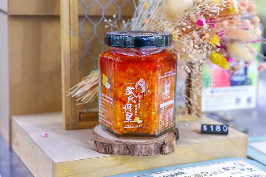 櫃子展示著熬製湯頭的香料,老闆娘私心推薦自己炒的辣椒,加入水果的辣椒很特別,店內用餐也能吃到,朝天椒夠香夠辣,在舌尖還有淡淡果香,帶點酸甜的辣椒醬,開胃解膩。