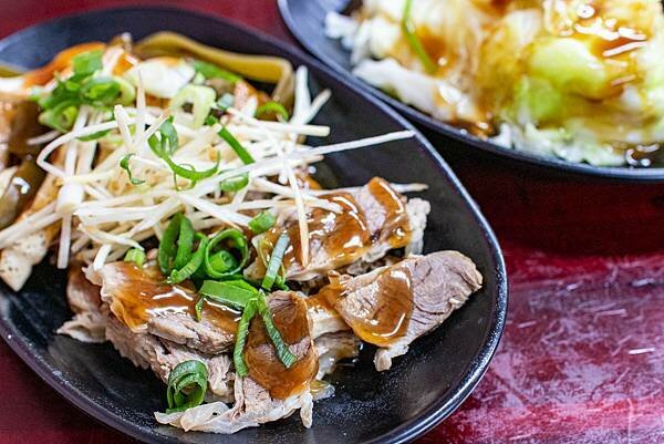 肉燥一匙一匙加,再淋上油蔥酥放上肉片及蔥花