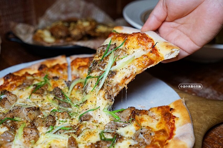 嚴選不會過肥的鹹豬肉搭配蒜苗、洋蔥一整個讓鹹香味美好豐富,加上薄脆的餅皮吃起來也不會過於飽足,搭配濃濃的起司香氣更是迷人啊!!