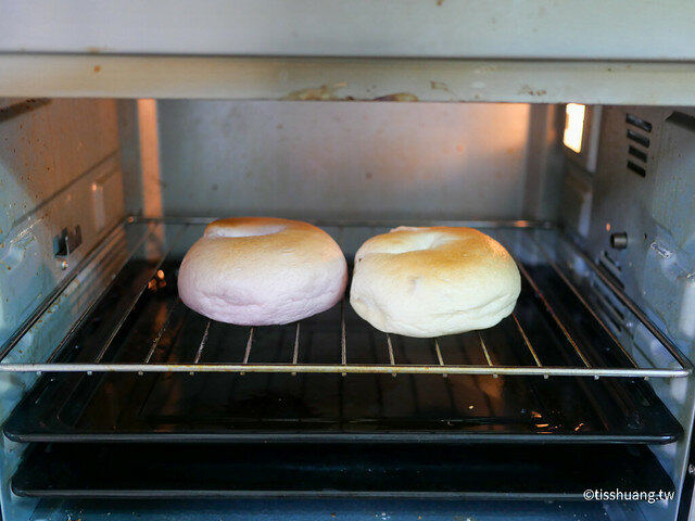 烤箱加熱: 烤箱以170預熱5分鐘,貝果表面噴點水,放入烤箱加熱3~5分鐘,烤出來的皮會有點脆脆的,喜歡吃脆脆的可以選這種方式加熱